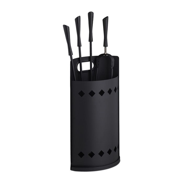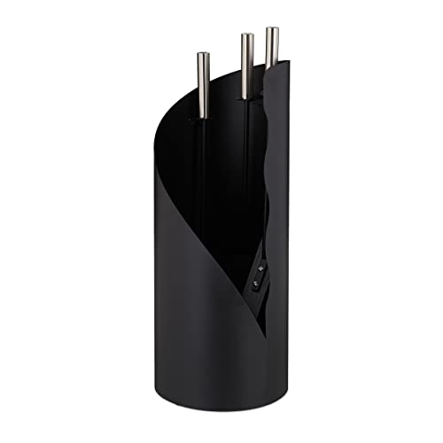 Relaxdays Serviteur de cheminée, Moderne, 4 pièces, tisonnier, Pelle à Cendre, Balai, Support, HxLxP 56,5x20x20cm, Noir