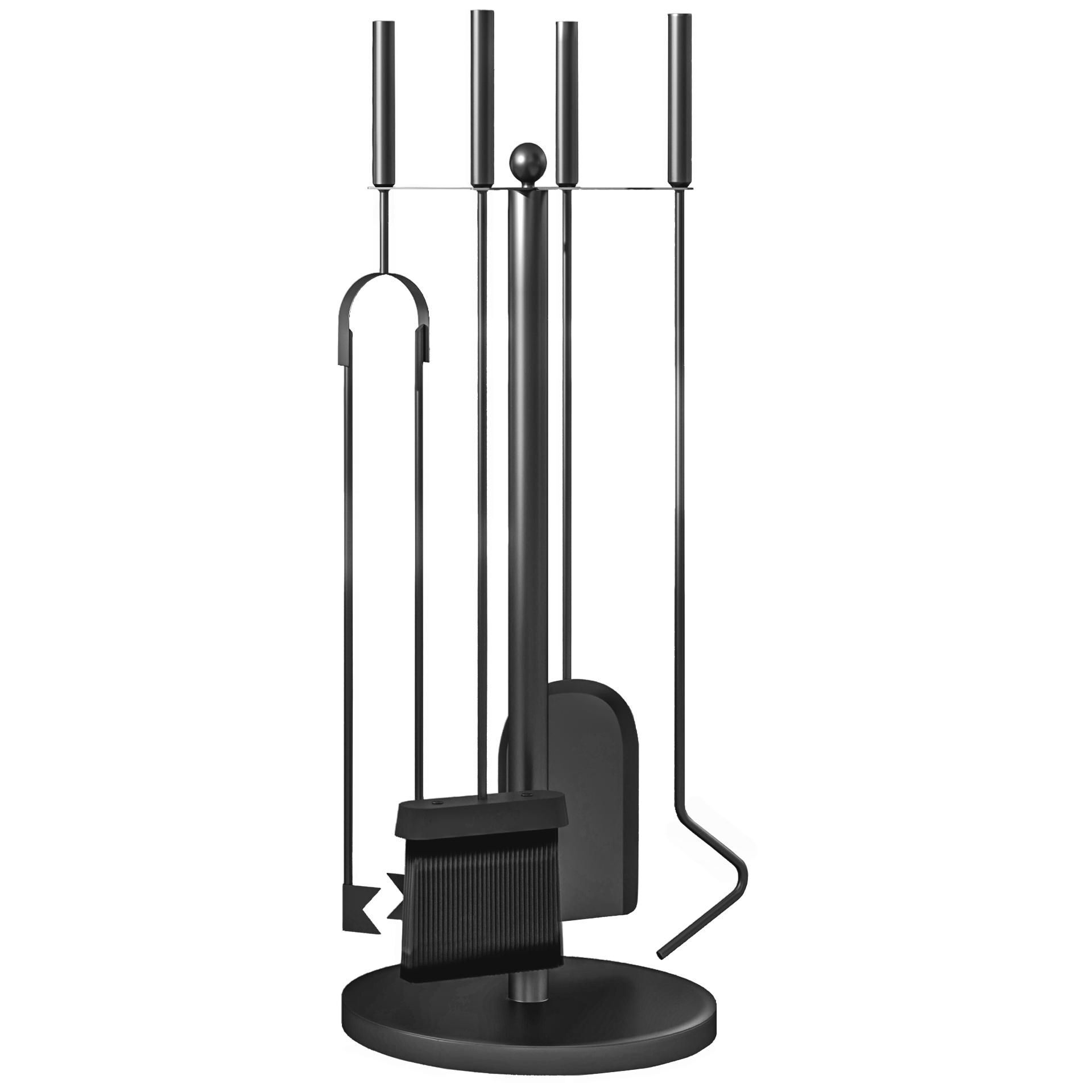 Serviteur de cheminée moderne 5 pièces - balai, pelle, pince, tisonnier, support - métal noir