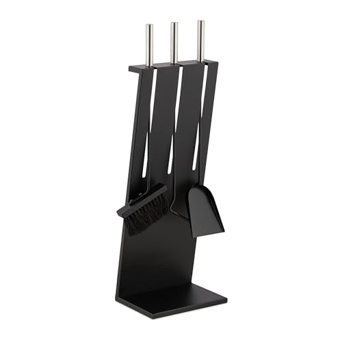 Relaxdays Couverts à cheminée, 5 pièces, serviteur, tisonnier, Pelle à Cendres, Balai, Pince & Support Moderne, Noir