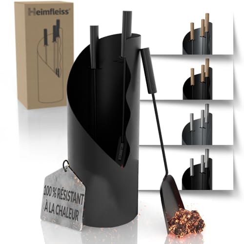 Heimfleiss® Serviteur Cheminée Noir Moderne | Ensemble d'Accessoires de Cheminée | Kit Cheminée avec Tisonnier, Pelle & Balayette | Accessoires de Cheminée avec Manches Noirs