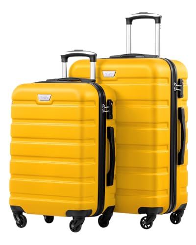 COOLIFE Set de Valise de Voyage 3 Tailles Valise Grande Taille Valise Cabine Petite Valise Sacs de Voyage Valise ABS avec 4 roulettes (Jaune, Set de 2 pièces (S + M))
