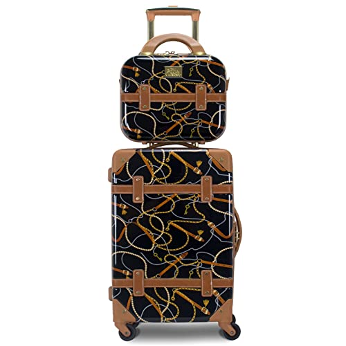 Chariot Gatsby Lot de 2 valises à Main rigides Style Vintage avec 2 pièces Noir, Posh Black, 2-Piece Set (Tote/20-Inch), Gatsby Vintage Style 2 pièces Hardside Bagages à Main rétro Valise de Traction