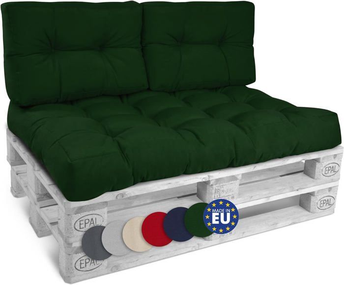 sunnypillow Set de 2 Coussins pour Canapé Palette Matelas Extérieur - d’Assise 120 x 80 x 15 cm + Dossier 120 x 40 x 20/10 cm - Coussin Salon de Jardin, Terrasse, Balcon - Vert