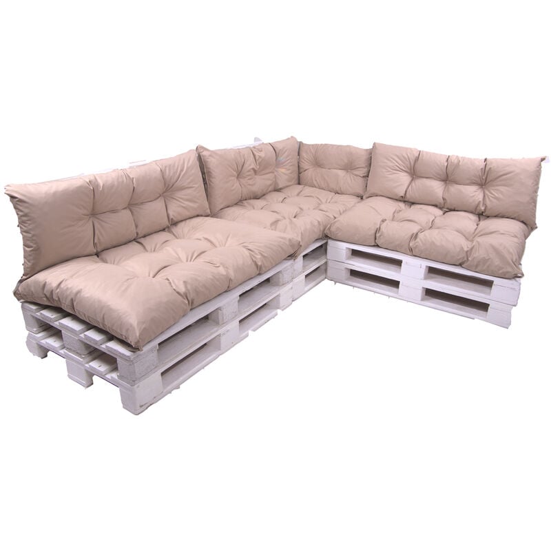 Setgarden - Set de 7 Coussins pour palettes, 3 x Assise 120x60 et Dossier 3x120x40cm Beige, Canapé de Jardin / coussin palette in / extérieur
