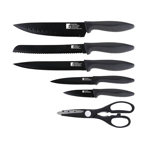 BERGNER OSAKA - Set 5 pcs Couteaux + Ciseaux - Acier Inoxydable Noir - Revêtement antiadhésif - Poignées ergonomiques - Facile à nettoyer