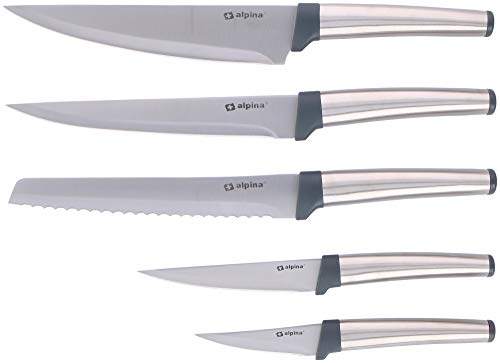 alpina Set de Couteaux 5 Pièces : Comprenant un Couteau à Pain et un Couteau de Chef - Inox/Polypropylène