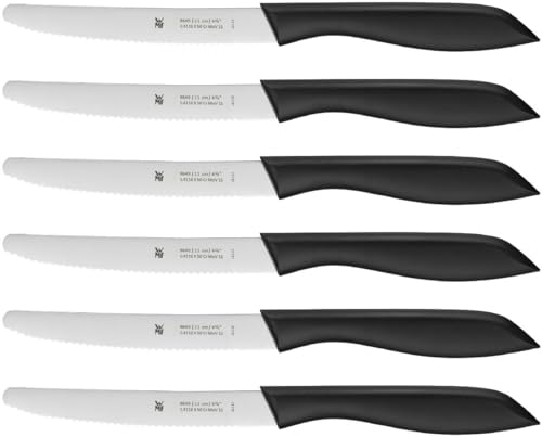 WMF 1896499990 Vesper Set de 6 couteaux Pièces Noir Longueur de la lame dentelée Lame en acier spécial Noir Poignée en plastique 11 cm, Acier inoxydable, Black, 23 cm, 6 unités