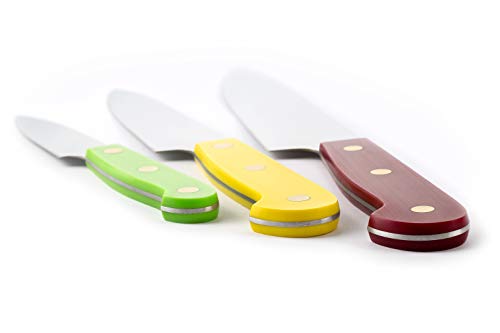 Arcos Séries Vintage - Set de Couteaux de Cuisine 3 pièces (Couteau à éplucher + Couteau Cuisine + Couteau du Chef) - Lame Acier Inoxydable Nitrum - Manche Polyoxyméthyléno (Pom) - Couleurs varièes