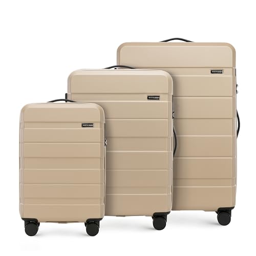 WITTCHEN Valise de Voyage Set de 3 valises Valise à roulettes Bagages à Main en ABS avec 4 roulettes pivotantes Serrure à Combinaison Poignée télescopique COMODO Line Beige