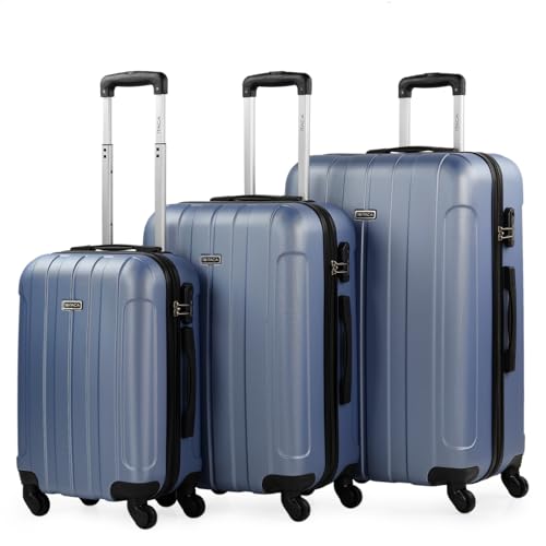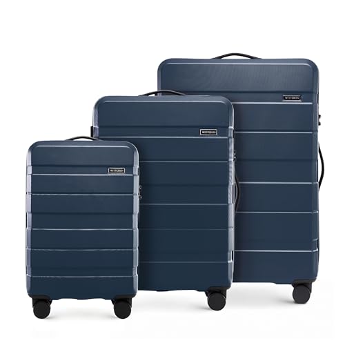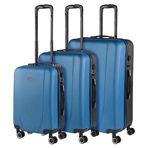 WITTCHEN Valise de Voyage Set de 3 valises Valise à roulettes Bagages à Main en ABS avec 4 roulettes pivotantes Serrure à Combinaison Poignée télescopique COMODO Line Bleu Marine