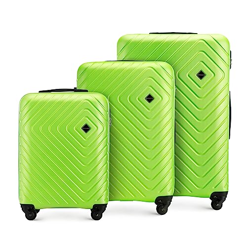 WITTCHEN Valise de Voyage Set de 3 valises Valise à roulettes Bagages à Main en ABS avec 4 roulettes pivotantes Serrure à Combinaison Poignée télescopique Cube Line Citron Vert