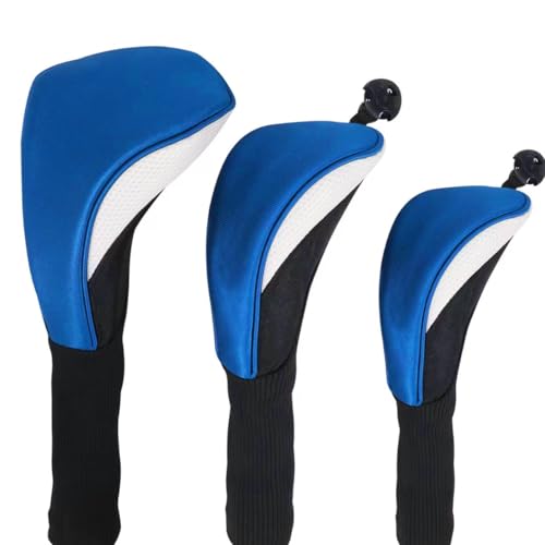 Couvre Club De Golf Bois Housses Interchangeables sans Etiquette Hybrid Driver Fairway Set, Golf Club Head Cover Femme Homme Enfant Noir Bleu Rouge (3 Pack—Bleu 1 Driver+1 Fairway+1 Hybrid)