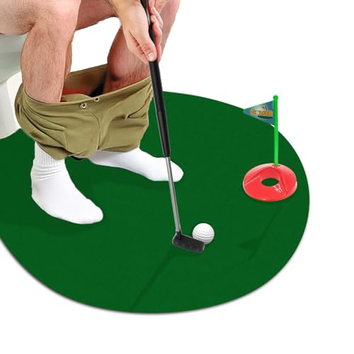 Set de Golf pour Les Toilettes à la Maison, Jeu de Minigolf Silencieux, y Compris Clubs, Billes et Tapis de Putting, Articles de Blague, Vert