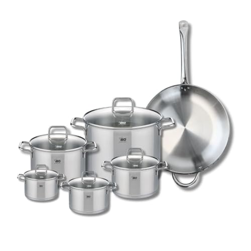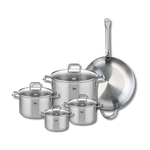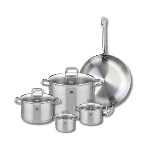 ELO 9501150 Batterie de cuisine 5 pièces, Set de 1 Poêle de cuisson 32 cm et 4 faitouts 12, 14, 20 et 26 cm Elo Profi Citrin, inox, induction, Gris Argent