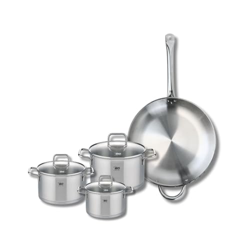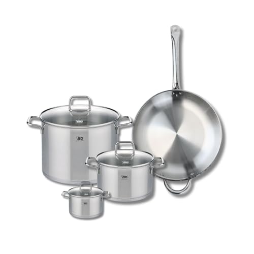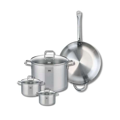 ELO 9500150 Batterie de cuisine 4 pièces, Set de 1 Poêle de cuisson 32 cm et 3 faitouts 12, 14 et 26 cm Elo Profi Citrin, inox, induction