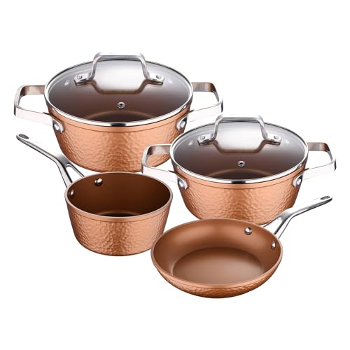 Herzberg - Batterie de cuisine - Set de casseroles induction 5 pièces - Casseroles et poêle tous feux en aluminium forgé avec revêtement marbre et poignée amovible - Cuivre