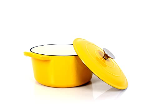 ECHTWERK Casserole en fonte avec revêtement émaillé, marmite en fonte, rôtissoire avec couvercle, poêle à pain ronde, convient aux fours, grills, barbecues et induction, jaune, 3,5 L