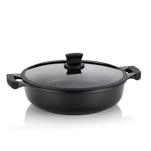 kela Poêle à servir/à braiser 32cm STELLA NOVA, avec couvercle et Oil Control System, Casserole à induction 5 L, Fonte d'aluminium revêtue, Poêle à paella à haut bord