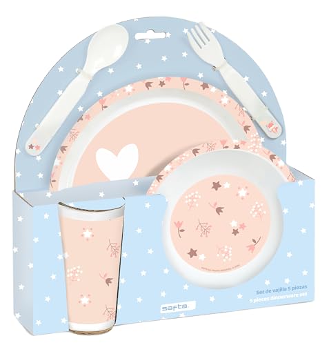 SAFTA PREESCOAR FLEURS - Set d'assiettes et couverts, Pack, assiette, couvert, bébé, initiation, repas, confortable et polyvalent, 26 x 9 x 26 cm
