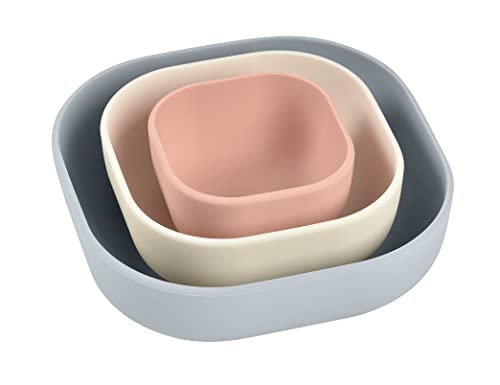 Béaba, Lot de 3 Bols Silicone Gigogne, Set Repas Bebe, Set Vaisselle Silicone Enfant, Emboitables, Evolutif, Ergonomique, Matière Silicone Saine, Durable (Velvet grey/Cotton/Dusty rose)