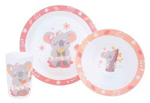 Fun House | Ensemble Repas Enfant Mimi Koala | Assiette Ø22 Cm Bol Ø16 Cm Verre 220 Ml | Vaisselle Réutilisable Résistante | Set 3 Pièces Bébé Facile À Nettoyer | Idée Cadeau Enfant