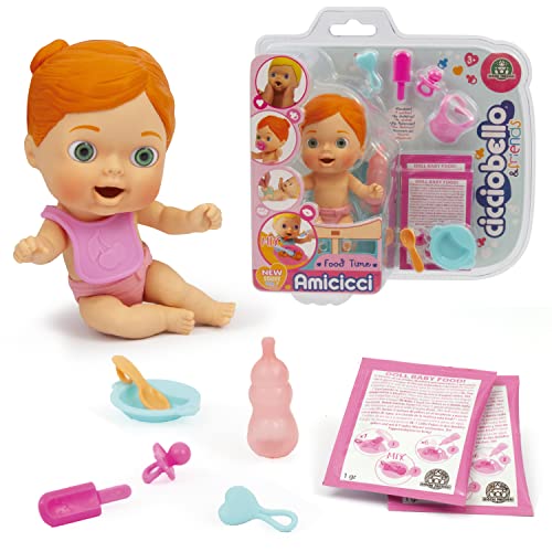 Cicciobello Amicicci, Bébé avec Set Repas et Accessoires, Modèle Fille Cheveux Roux, Jouet pour Enfants dès 3 Ans, GIOCHI PREZIOSI, CC0222