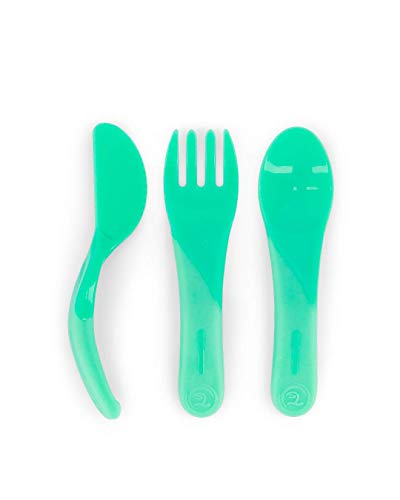 Twistshake Couverts Bébé 6m+ – Cuillère + Fourchette + Couteau, Lot de 3 – Set Sevrage Sans BPA – Accessoire Repas pour Tout-Petit – Vert