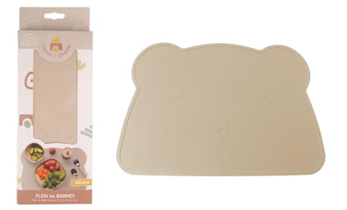 DORON & CHARLIE - Set De Table - Repas De Bébé - 056622 - Beige - Silicone - Design Ourson - Antidérapant - Etanche - Lavable - Imperméable - 1er Age - Puériculture - Facile à Nettoyer