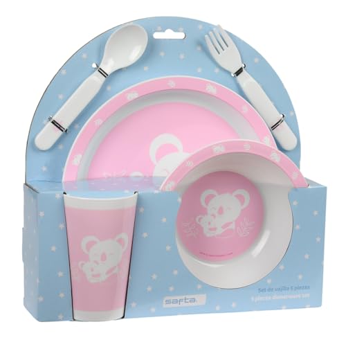 Safta PREESCOLAR KOALA - Set d'assiettes et couverts, Pack, assiette, couvert, bébé, initiation, repas, confortable et polyvalent, 26 x 9 x 26 cm, rose, M, Décontracté