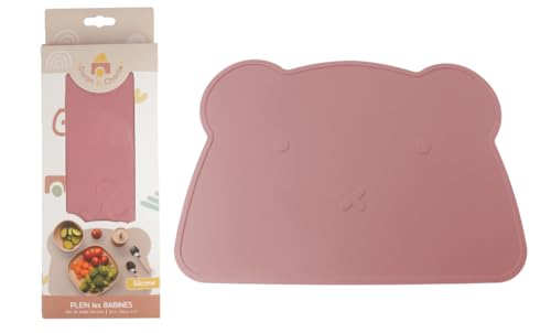 DORON & CHARLIE - Set De Table - Repas De Bébé - 056620 - Rose - Silicone - Design Ourson - Antidérapant - Etanche - Lavable - Imperméable - 1er Age - Puériculture - Facile à Nettoyer