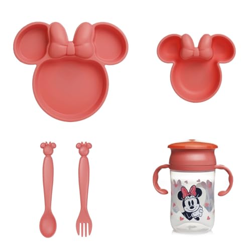 Set De Vaisselle Pour Enfants DISNEY Minnie - Assiette Compartimentée - Bol - Cuillère - Fourchette Et Tasse D'Apprentissage 360° - Design Amusant Et Pratique Pour Repas Bébé
