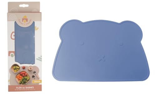 DORON & CHARLIE - Set De Table - Repas De Bébé - 056621 - Bleu - Silicone - Design Ourson - Antidérapant - Etanche - Lavable - Imperméable - 1er Age - Puériculture - Facile à Nettoyer