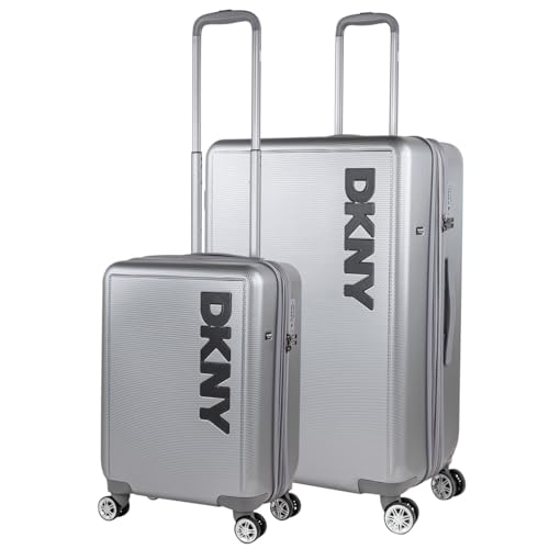 DKNY - Set Valise Rigide, Lot de Valises Soute Avion 4 roulettes - Sets de Bagages, Valise à Roulette en Soldes pour Voyages. Lot Valise: Ensemble pour Voyages élégants, Argenté