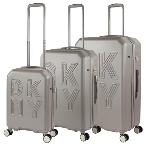 DKNY - Set Valise Rigide, Lot de Valises Soute Avion 4 roulettes - Sets de Bagages, Valise à Roulette en Soldes pour Voyages. Lot Valise: Ensemble pour Voyages élégants, Cendre