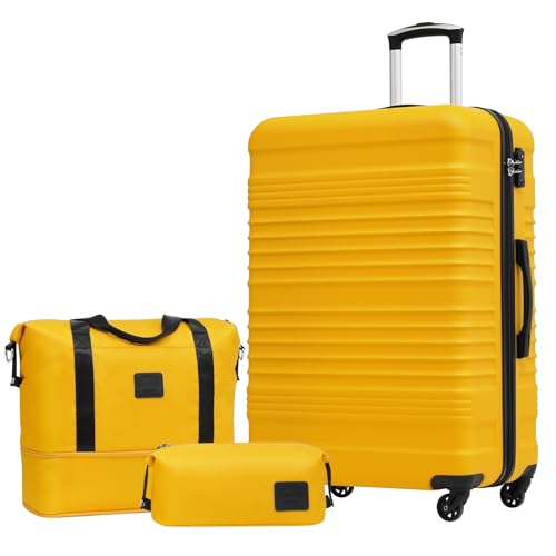 COOLIFE Set de 3 Valises de Voyage Rigide avec Sac de Voyage Extensible pour Sport et Trousse de Toilette, Set Valise Sets de Bagages Serrure en Famille TSA et roulettes Pivotantes à 360°