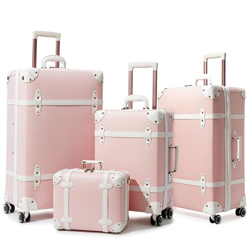 urecity Ensemble Valises Voyage, à la Mode Baggage Cabin, Mignon Sets de Bagages avec Serrure TSA et 8 Roues (Rose, Set DE 4)