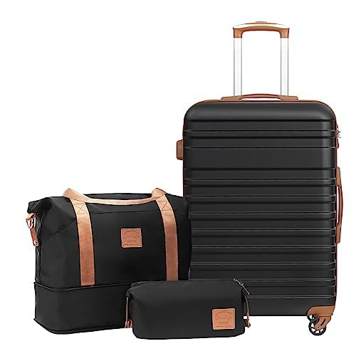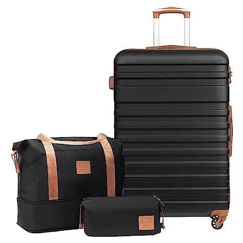 COOLIFE Valise, Valises Rigide Valise Soute, Sets de Bagages Comprend 1 Sac de Voyage et 1 Trousse de Toilette, Cadenas TSA pour Les Voyages, Abricot/Noir, Set de 3 Valises (24")