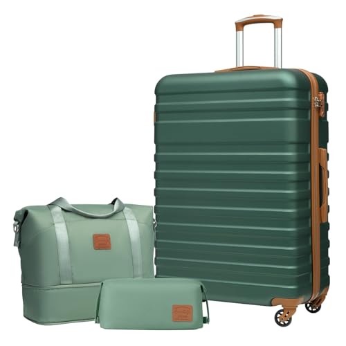 COOLIFE Valise, Valises Rigide Valise Soute, Sets de Bagages Comprend 1 Sac de Voyage et 1 Trousse de Toilette, Cadenas TSA pour Les Voyages, Abricot + Vert Foncé, Set de 3 Valises (24")