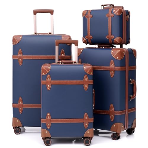 urecity Ensemble Valises Voyage, à la Mode Baggage Cabin, Mignon Sets de Bagages avec Serrure TSA et 8 Roues (Bleu, Set DE 4)