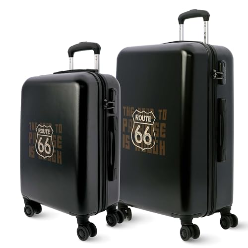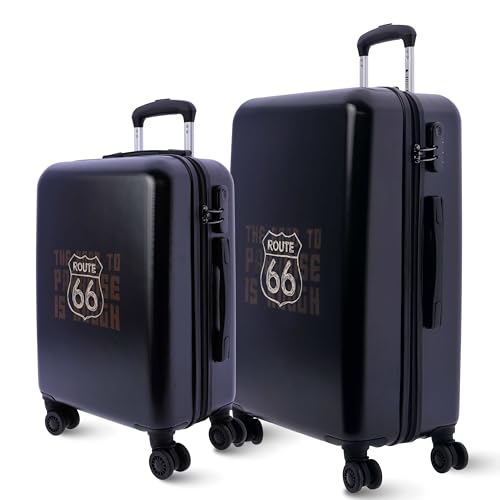 Route 66 , Sets de Bagages (Pack 2) - Valise Cabine 55x40x20 et Valise Moyenne 66x44x24 - Légères et Durables - Ensemble de 2 Valises de Voyage (Noir)