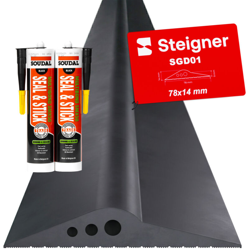 STEIGNER Seuil de garage 2,625m en EPDM noir 14mm x 78mm, SGD01 - Kit isolant avec 1x colle montage et joint porte garage pour différents types de