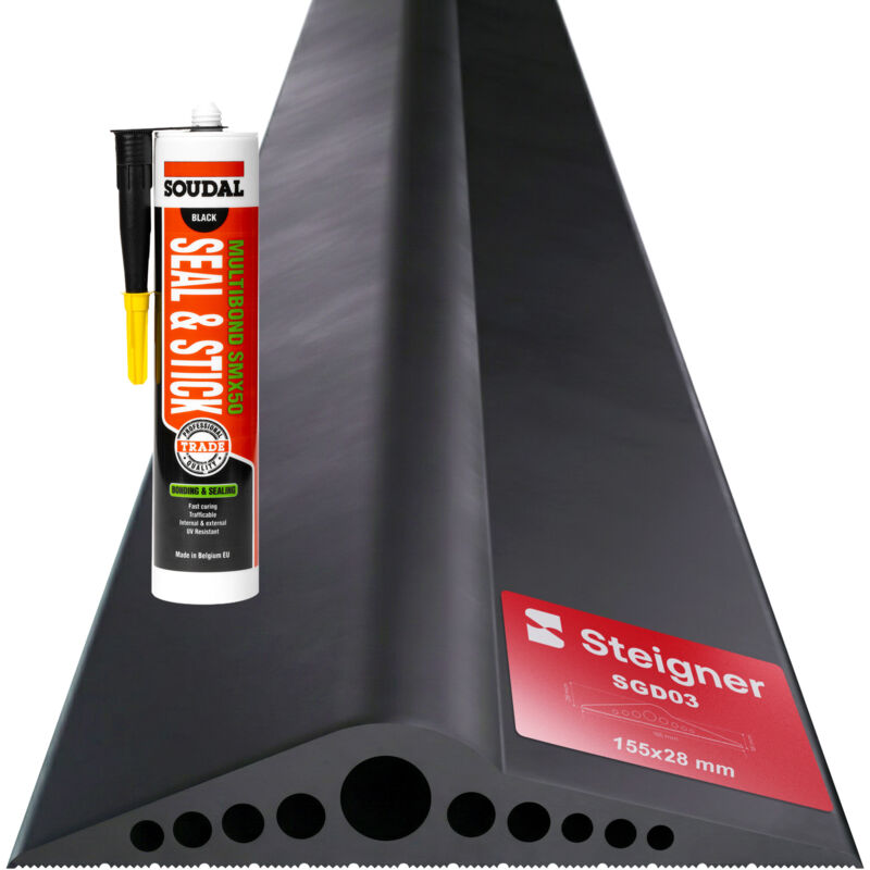 STEIGNER Seuil de garage 2,75m en EPDM noir 28 mm x 155 mm,SGD03 - Kit isolant avec 1x colle montage et joint porte garage pour différents types de