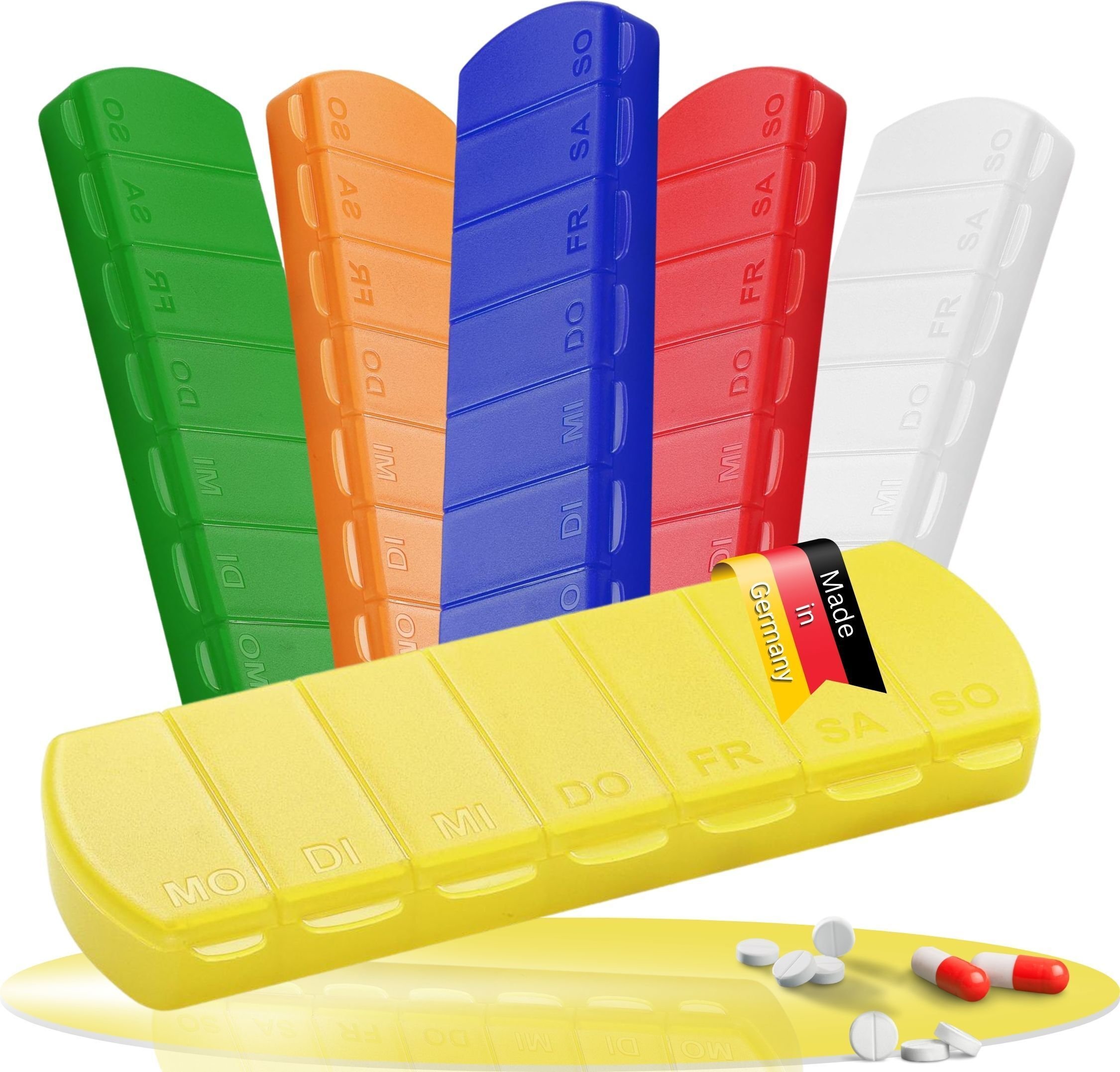Boîte à médicaments "Seven Days" - boîte à pilules sans BPA avec 7 compartiments pour chaque jour de la semaine, boîte à pilules robuste - boîte à comprimés Germany - trend-gelb PP