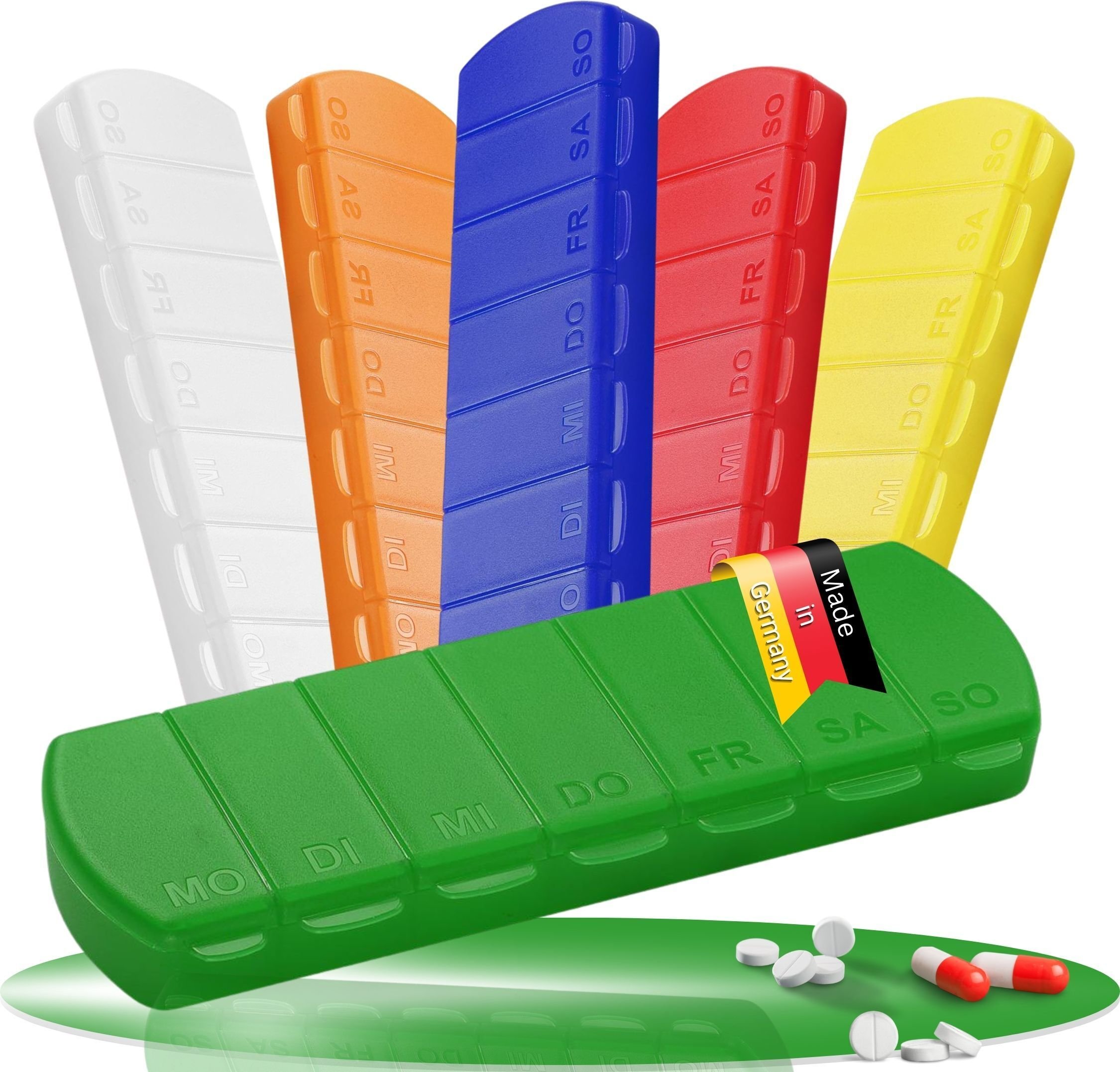 Boîte à médicaments "Seven Days" - boîte à pilules sans BPA avec 7 compartiments pour chaque jour de la semaine, boîte à pilules robuste - boîte à comprimés Germany - trend-green PP