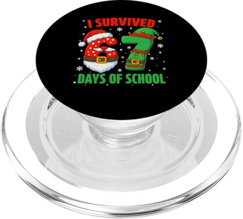 I Survived 67 Days of School Christmas Santa Elf Six Seven PopSockets PopGrip Adhésif