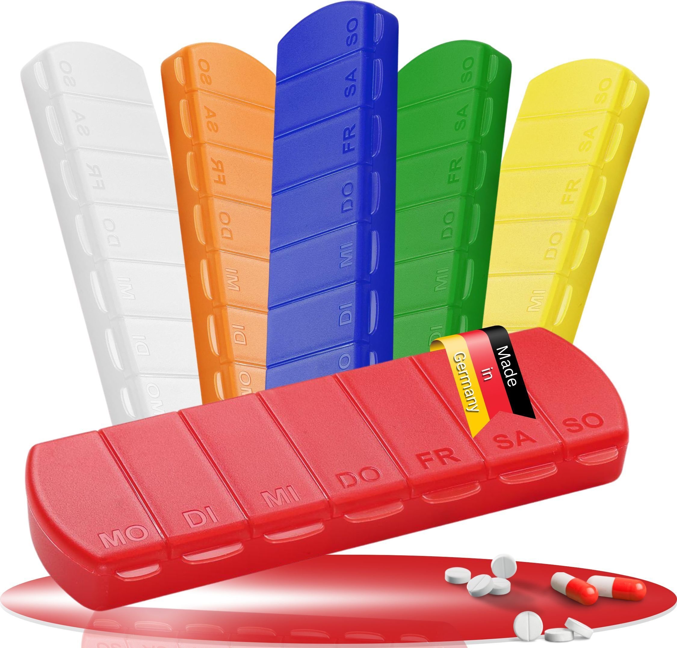 Boîte à médicaments "Seven Days" - boîte à pilules sans BPA avec 7 compartiments pour chaque jour de la semaine, pilulier robuste - boîte à comprimés Germany - trend-red PP