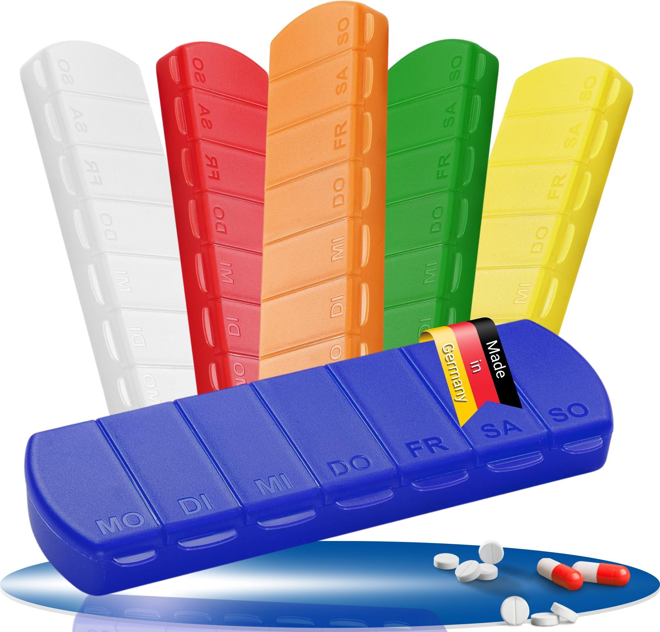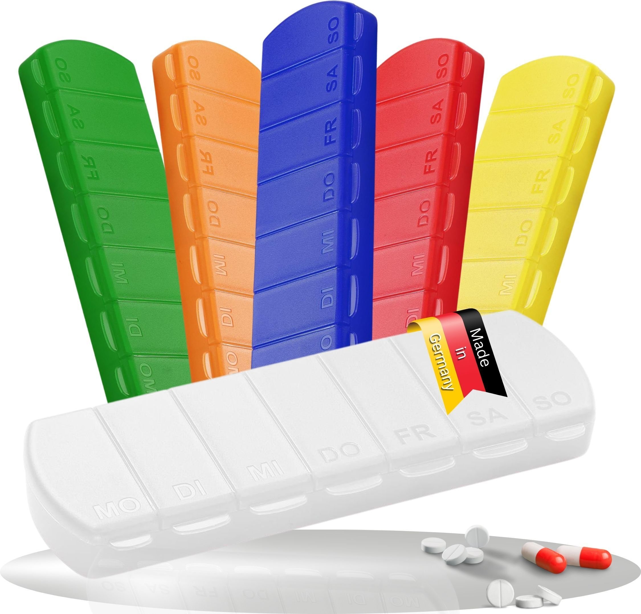 Boîte à médicaments "Seven Days" - boîte à pilules sans BPA avec 7 compartiments pour chaque jour de la semaine, boîte à pilules robuste - boîte à comprimés Germany - Transparent-lait
