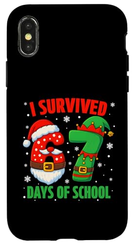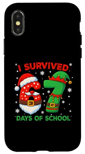 I Survived 67 Days of School Christmas Santa Elf Six Seven Coque pour iPhone X/XS