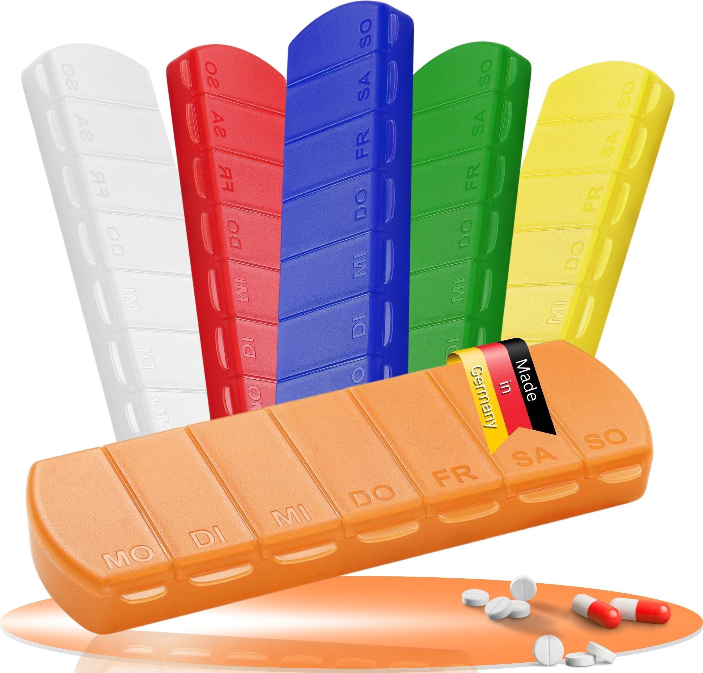 Boîte à médicaments "Seven Days" - boîte à pilules sans BPA avec 7 compartiments pour chaque jour de la semaine, pilulier robuste - boîte à comprimés Germany - trend-orange PP