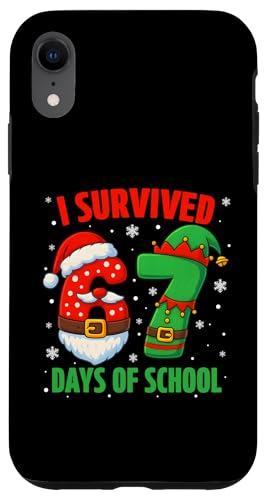 I Survived 67 Days of School Christmas Santa Elf Six Seven Coque pour iPhone XR